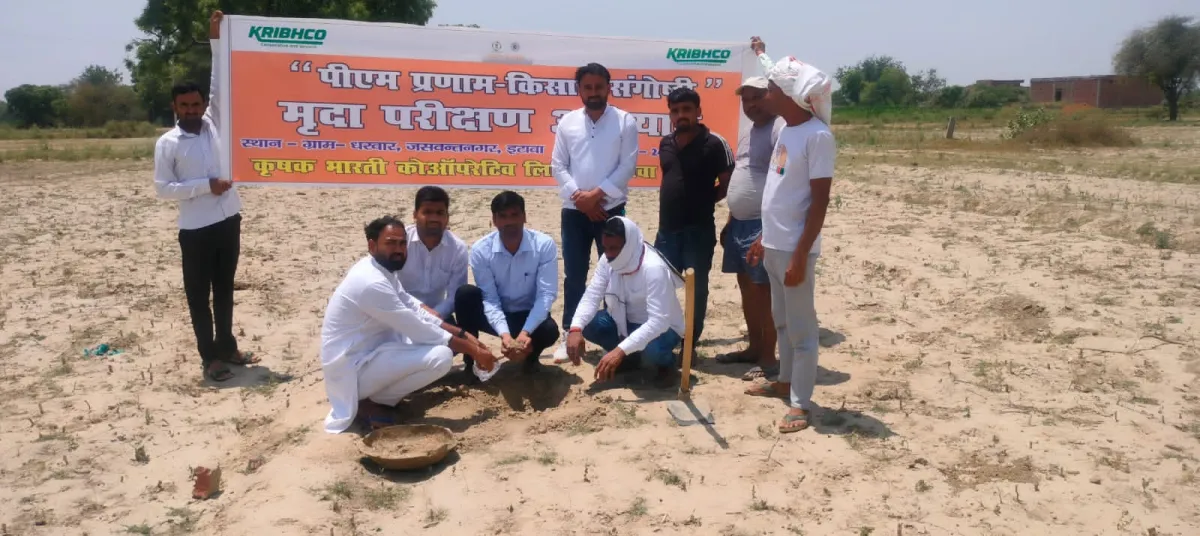 जसवंतनगर/इटावा। आज दिनांक 24 अप्रैल 2026 को कृभको द्वारा केबीएसके जसवंतनगर, इटावा को आवंटित मृदा परीक्षण कार्यक्रम के अंतर्गत पीएम प्रणाम किसान संगोष्ठी के तहत मृदा परीक्षण अभियान का आयोजन किया गया। कार्यक्रम का उद्देश्य किसानों को मृदा स्वास्थ्य के प्रति जागरूक करना और संतुलित उर्वरकों के उपयोग के लिए प्रेरित करना रहा।